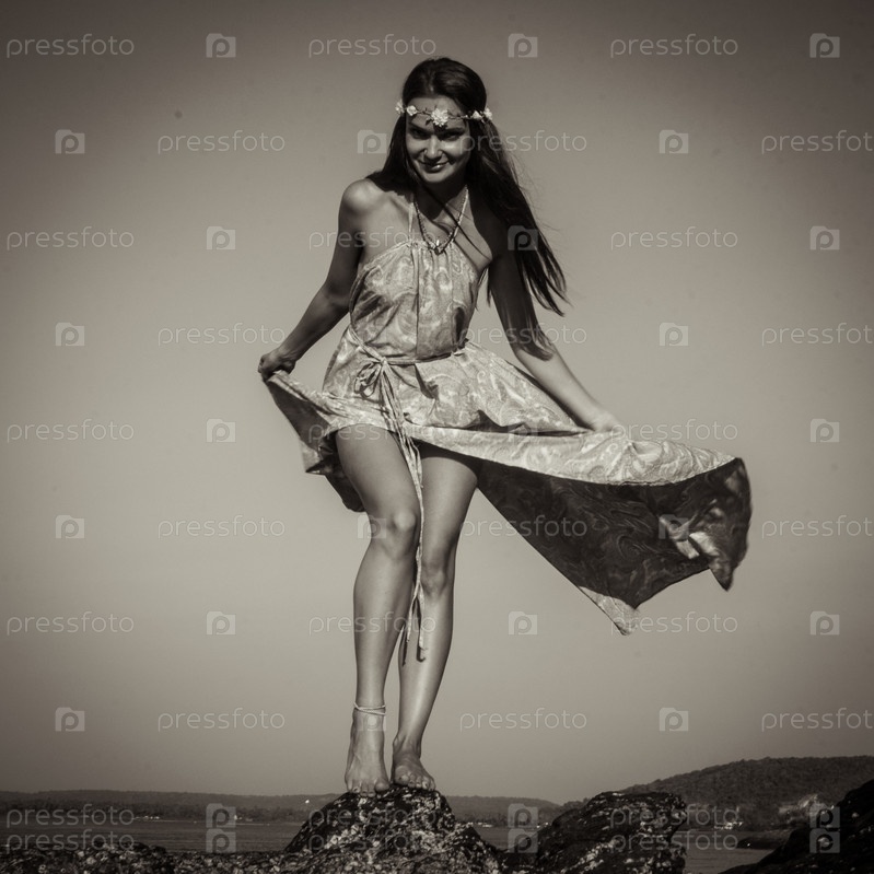Модель позирует на камне
