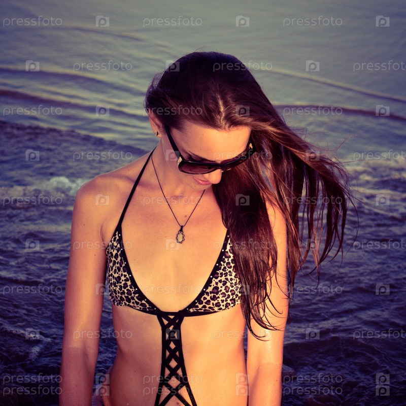 Модель позирует в купальнике
