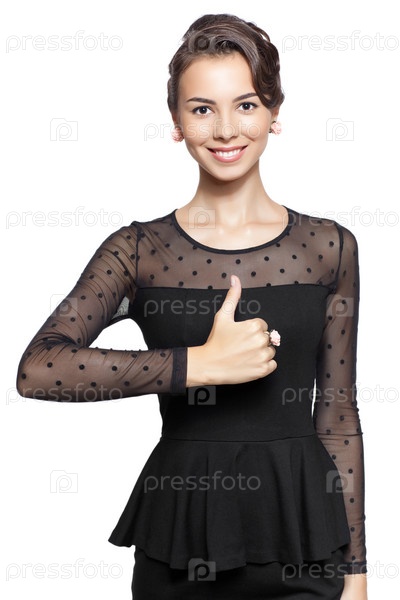 Молодая красивая женщина в черном платье на белом фоне