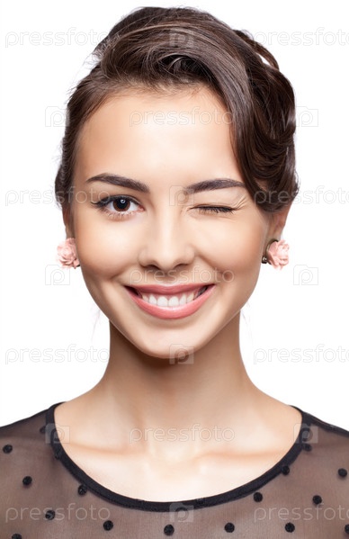 Молодая красивая женщина в черном платье на белом фоне