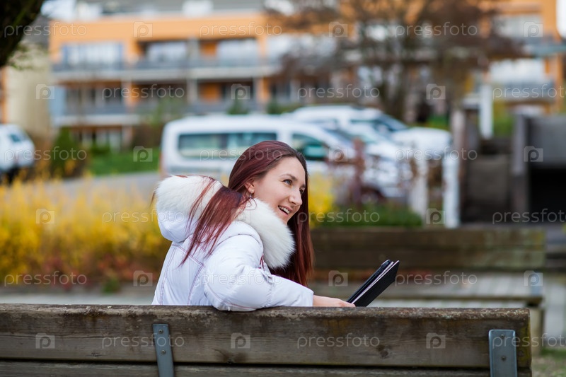Женщина с планшетом на улице