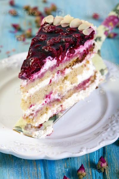 Кусок торта с вишней