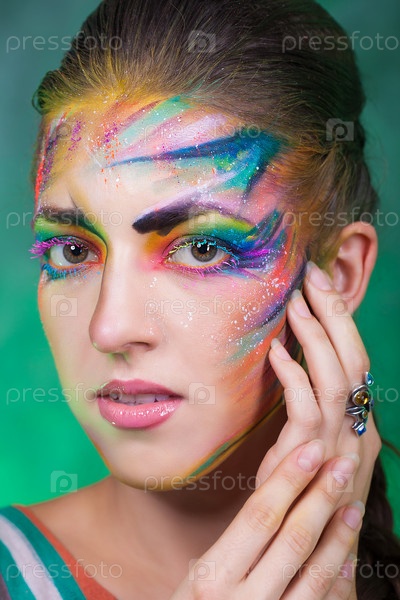 Портрет девушки с креативным фейс-артом на лице
