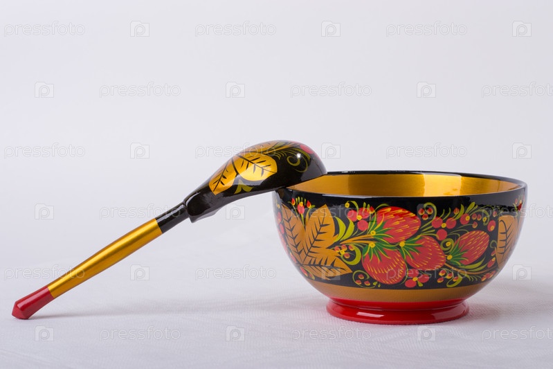 Ложка и тарелка с русской народной росписью