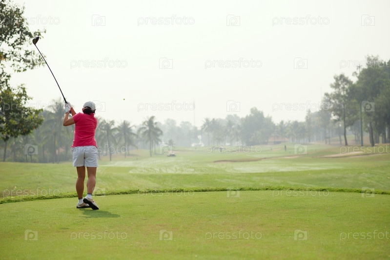 Женщина играет в гольф