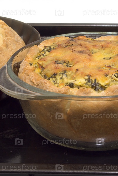 Пирог со шпинатом и сыром в стеклянной посуде