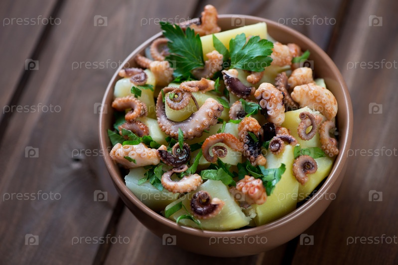 Итальянский салат с осьминогом и картофелем