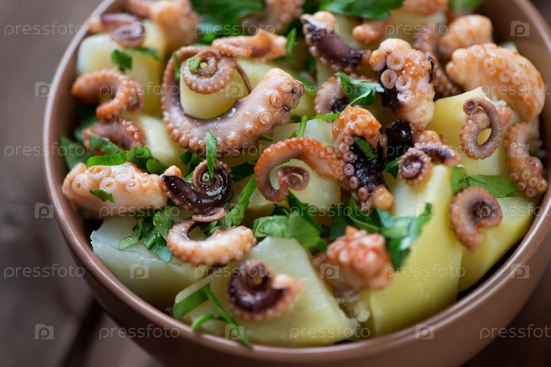 Итальянский салат с осьминогом и картофелем