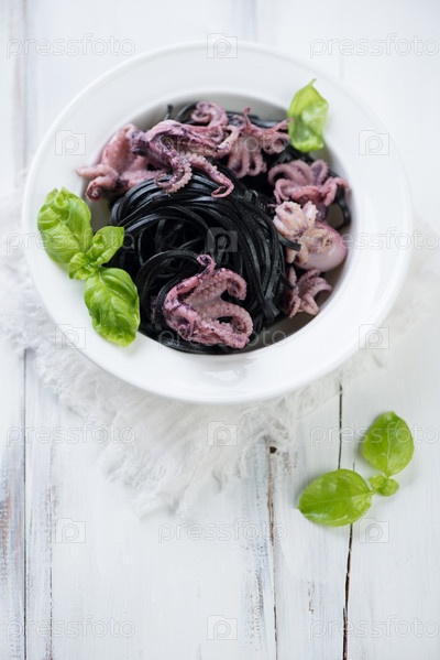 Черные тальятелле с осьминогами