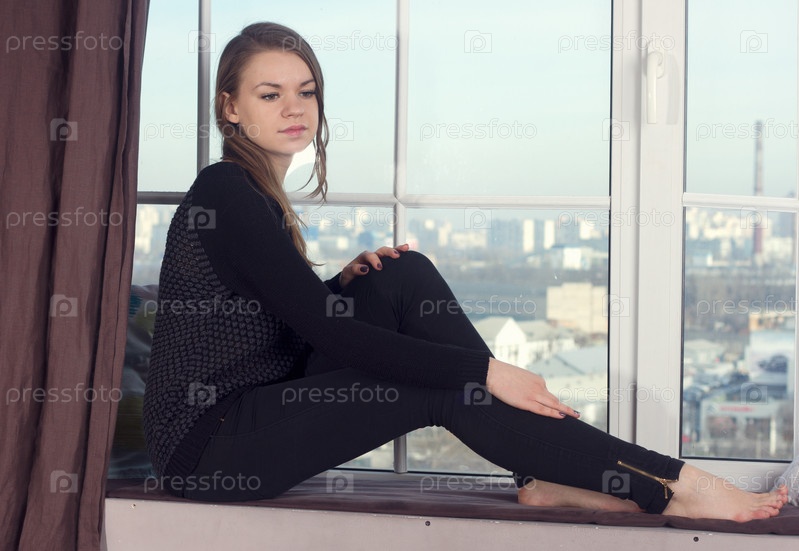 Женщина сидит на подоконнике