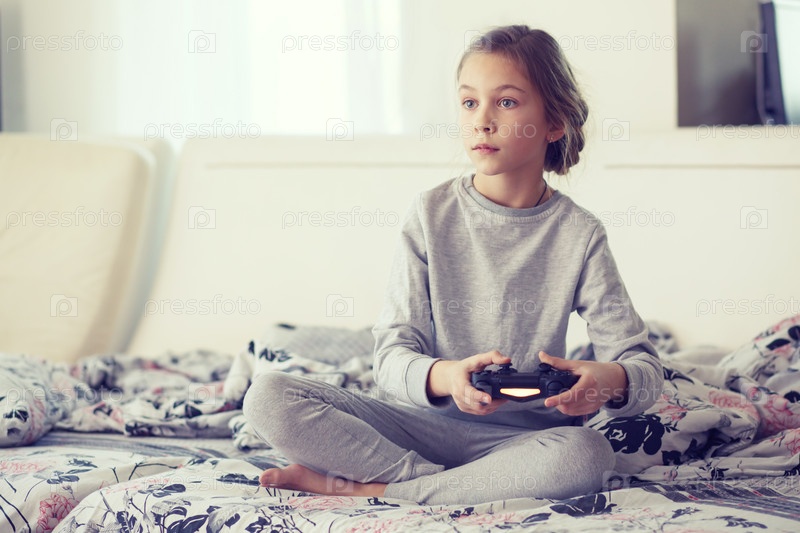 Девочка играет в видео-игру