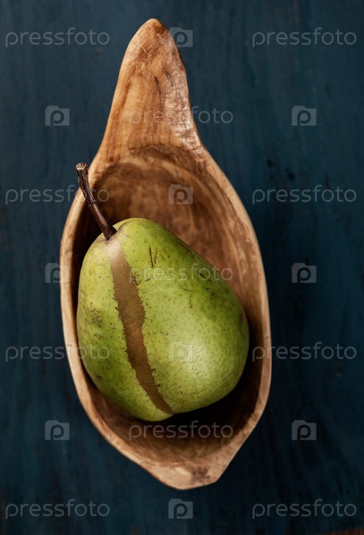 Груша в деревянной миске