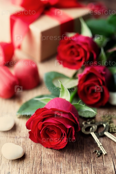 Розы на деревянной доске