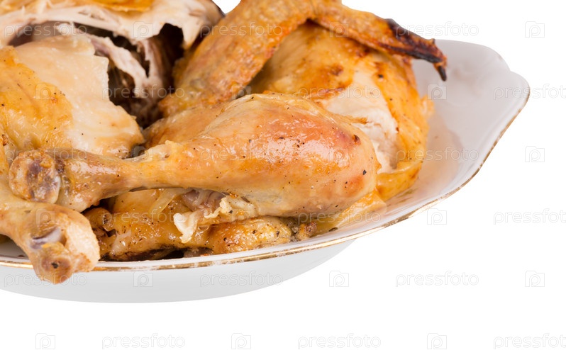 Жареная курица на тарелке
