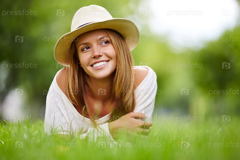 Красивая девушка на поляне в парке
