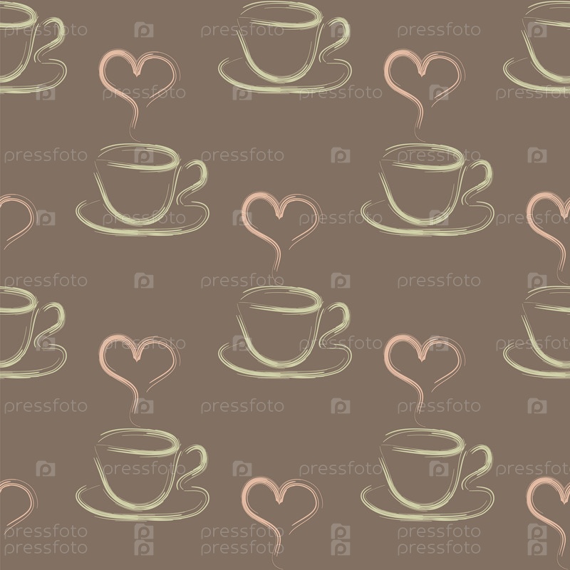 Бесшовный векторный шаблон с чашками кофе и сердцами