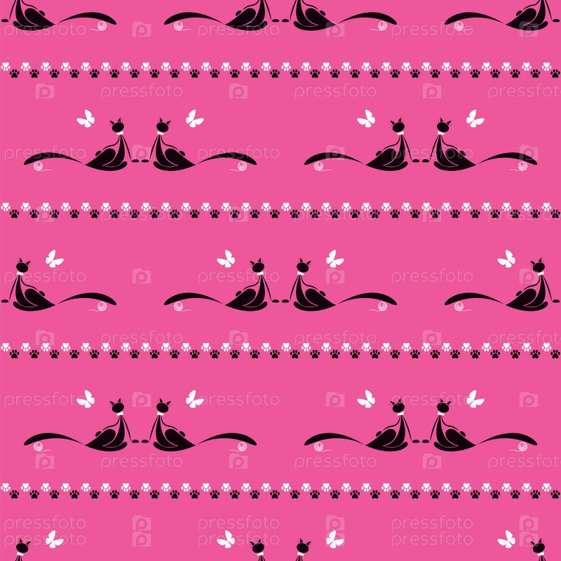 Бесшовный узор, кошка с бабочкой