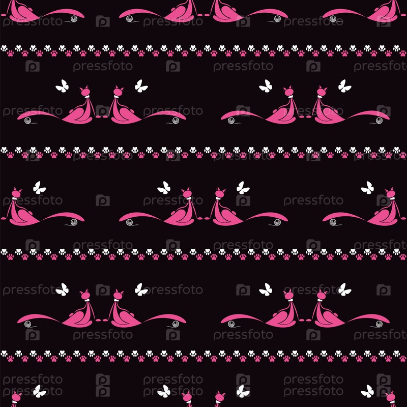 Бесшовный узор, кошка с бабочкой