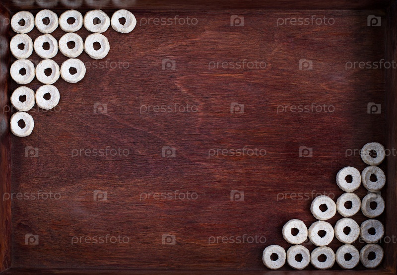 Кукурузные колечки в темной деревянной коробке