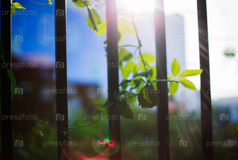 Солнечные лучи и листья винограда