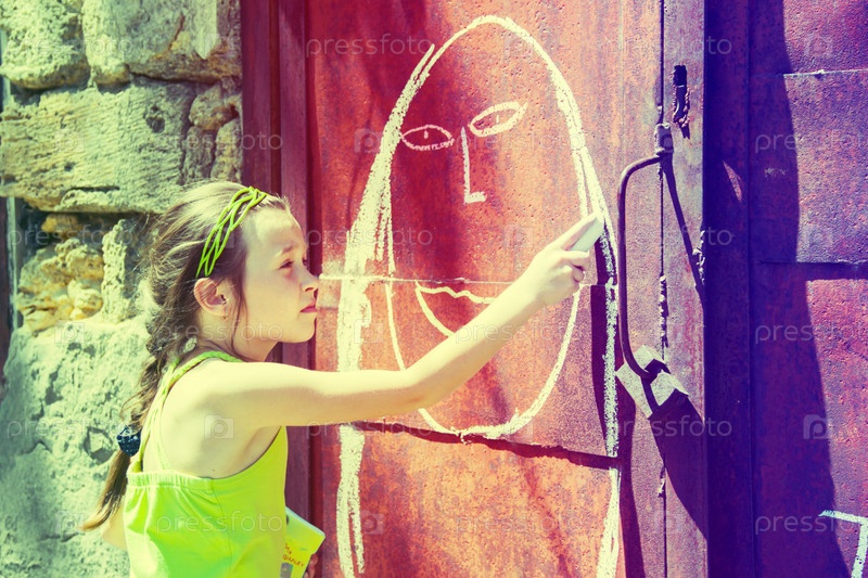 Девочка рисует мелом