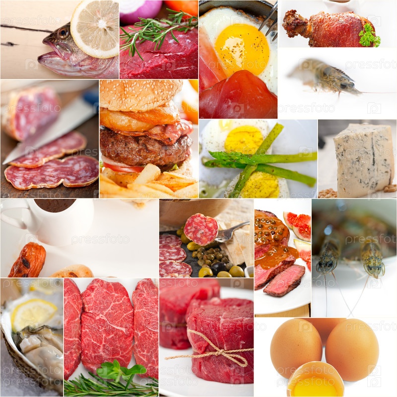 Коллаж из продуктов с высоким содержанием белка
