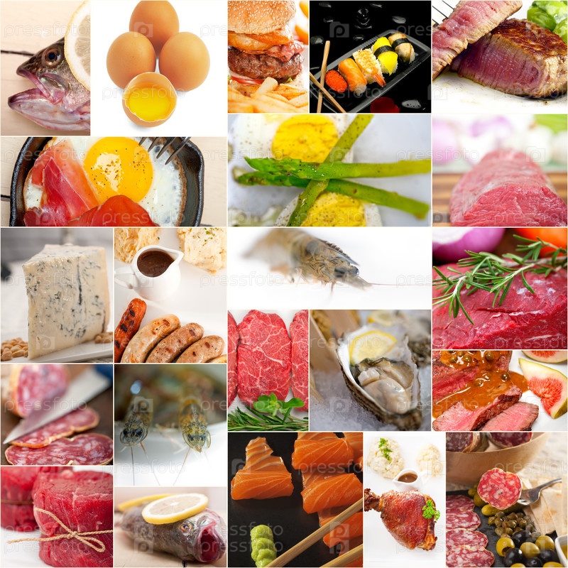 Коллаж из продуктов с высоким содержанием белка
