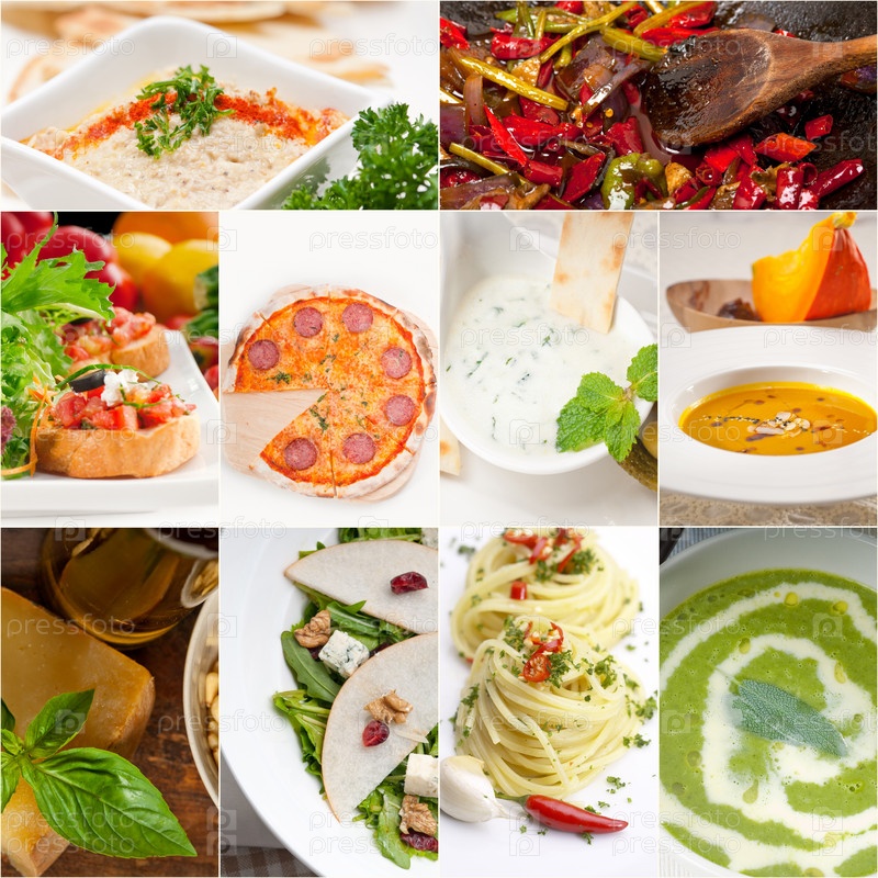 Здоровая и вкусная итальянская еда, коллаж