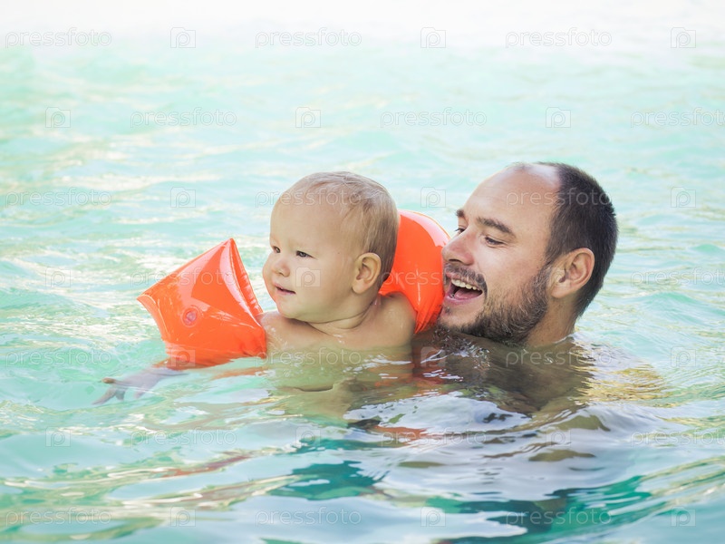 Отец с сыном в бассейне