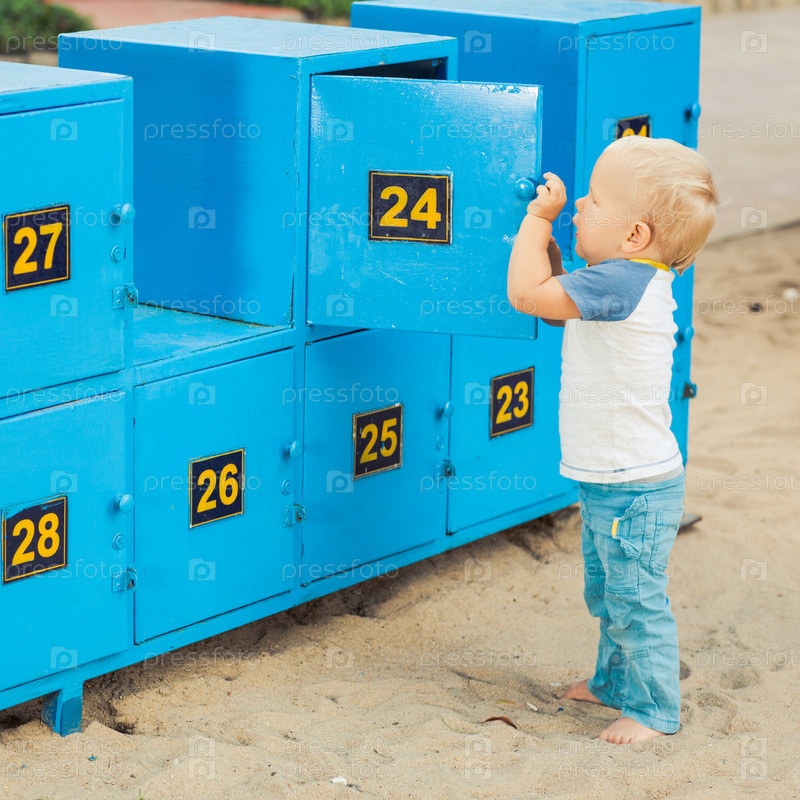 Мальчик рядом с камерой хранения