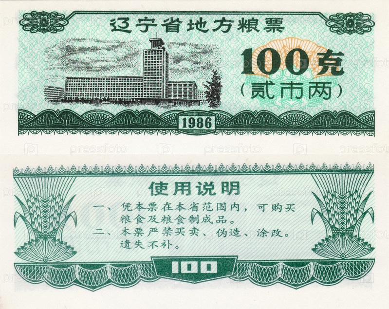 Банкнота Китай продовольственный купон 100 1986 год