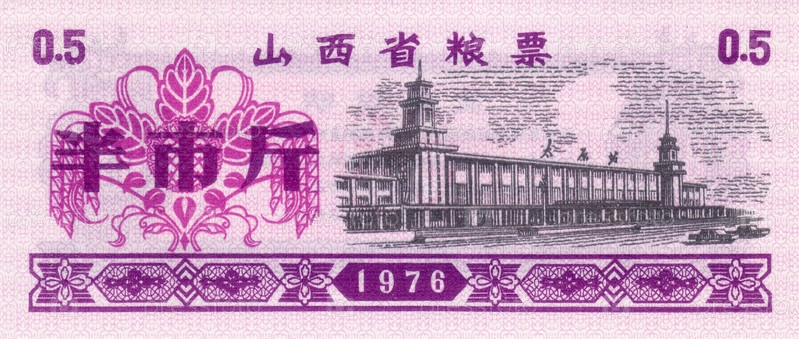 Банкнота Китай продовольственный купон 0,5 1976 год лицевая сторона