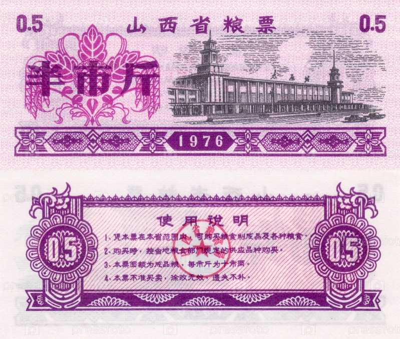 Банкнота Китай продовольственный купон 0,5 1976 год