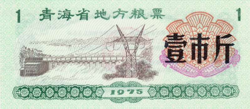 Банкнота Китай продовольственный купон 1 1975 год лицевая сторона