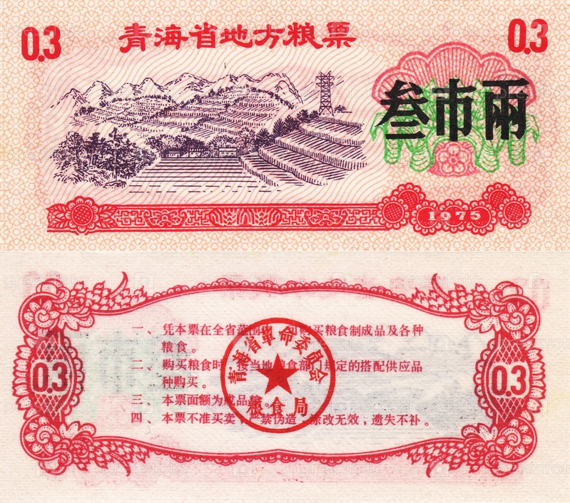 Банкнота Китай продовольственный купон 0,3 1975 год