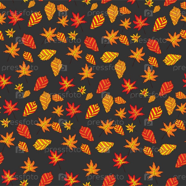 Бесшовный фон с осенними листьями на темном фоне