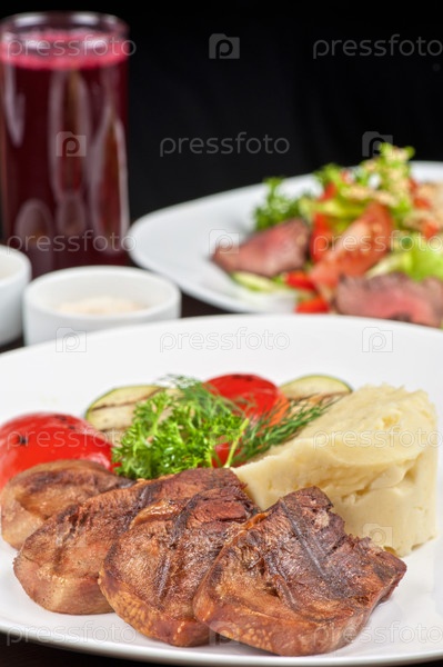 Язык с жареными овощами