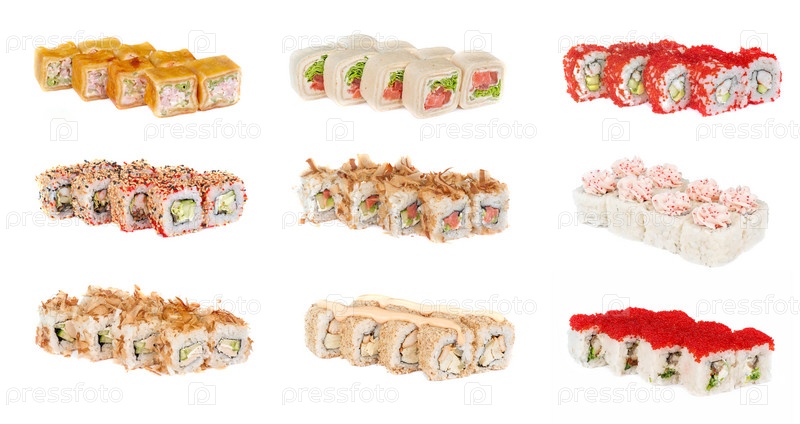 Суши роллы с авокадо, кунжутом и креветками