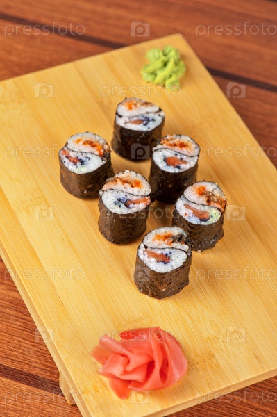 Суши роллы с летучей рыбой и блинами