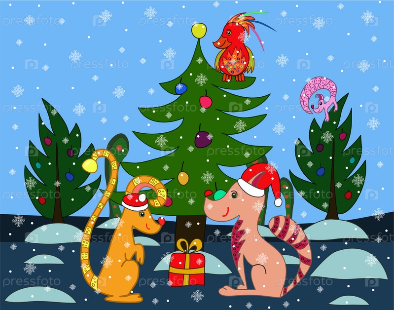 Рождественская открытка с животными в лесу