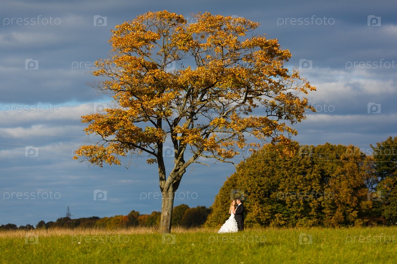 Невеста и жених на поле
