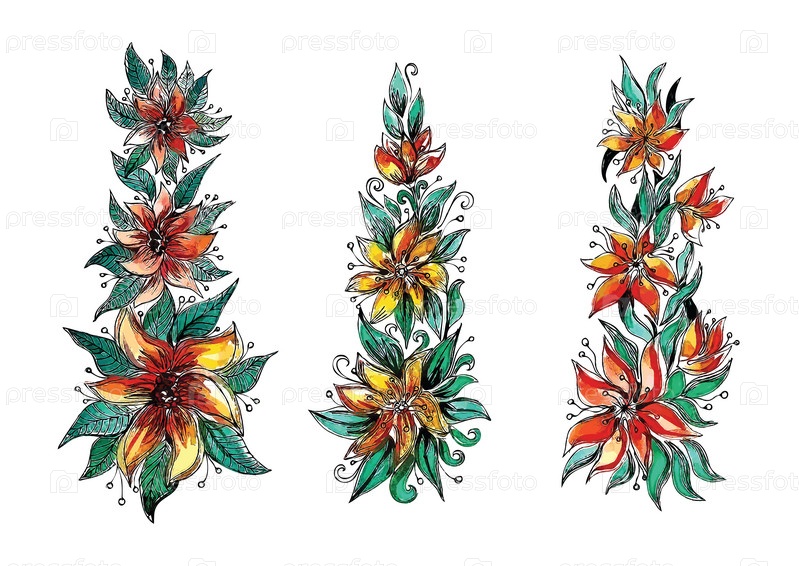 Акварельные цветы с листьями