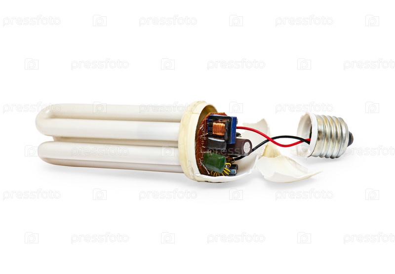 Разбитая лампа на белом фоне