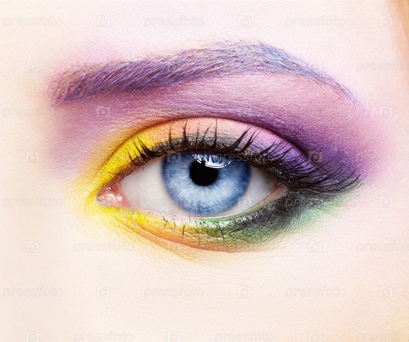 Женский глаз с ярким макияжем, крупным планом