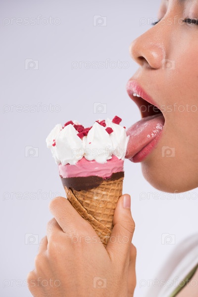 Девушка ест мороженое