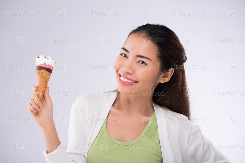 Девушка ест мороженое
