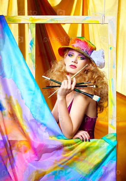 Женщина-художник с кистями