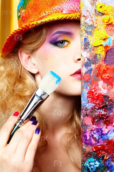 Портрет девушки-художника с кистью и палитрой