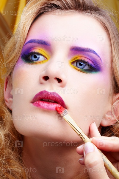 Художник делает макияж при помощи кисти и краски