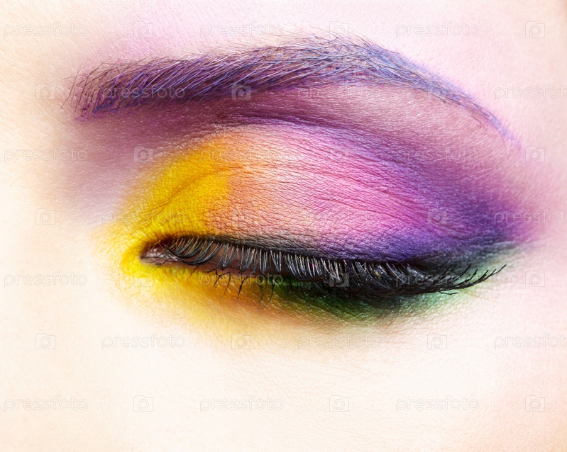 Женский глаз с ярким макияжем, крупным планом
